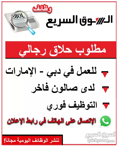 مطلوب حلاق رجالي للعمل لدى صالون في دبي