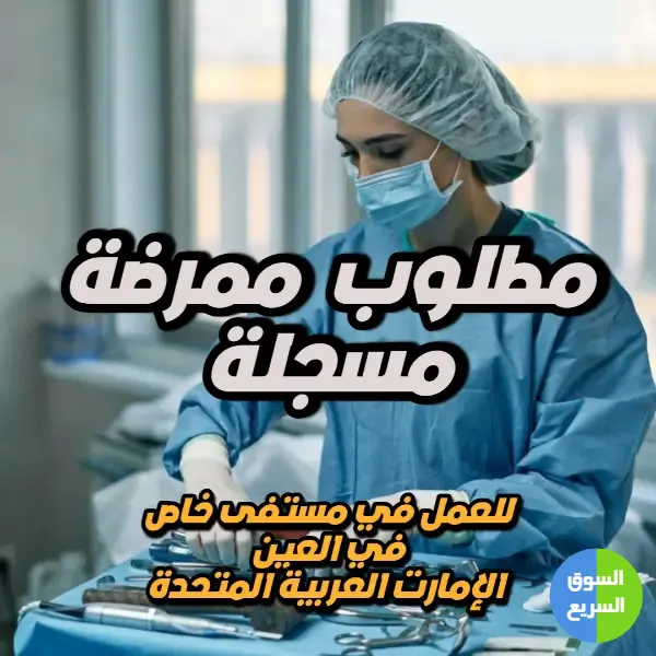 يعلن مستشفى خاص في مدينة العين عن حاجته لتوظيف ممرضة مسجلة للعمل ضمن فريق تمريضي محترف.