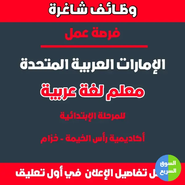 مطلوب معلم لغة عربية مرحلة ابتدائية - للعمل في رأس الخيمة - الإمارات